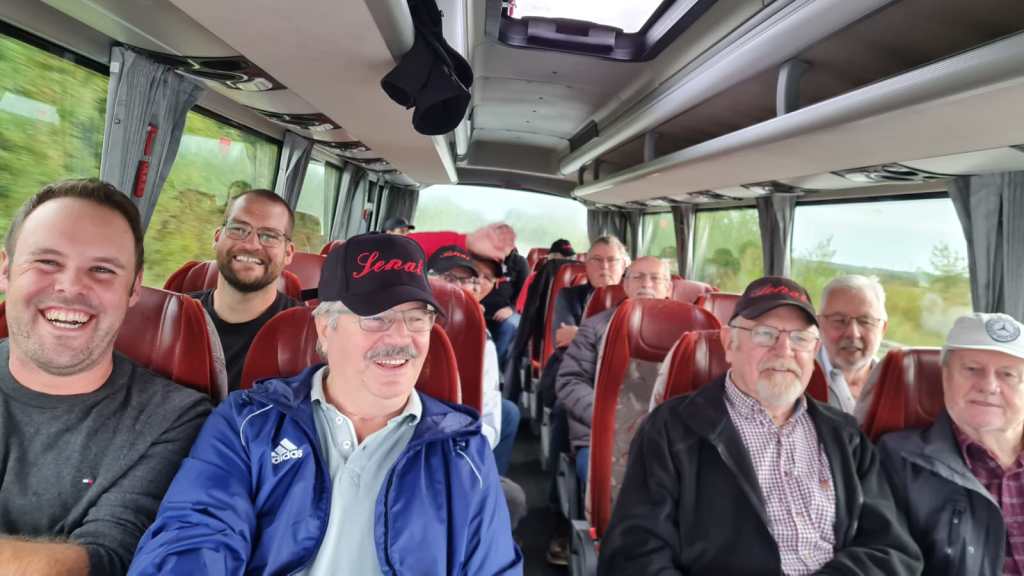 Getroffen wurde sich am Sonntag Morgen zur Abfahrt bei der Bäckerei Schneiders. Hier gab es, bevor der Bus losfuhr, noch Kaffee und belegte Brötchen. Die Senatstour führte dieses Jahr an den Rursee.