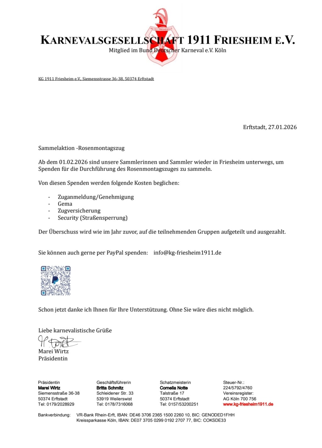 Ab dem 01.02.2026 könnt ihr euch bei der Sammelaktion beteiligen. Die Sammelaktion dient der Durchführung des Rosenmontagszuges.